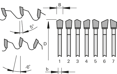 - 为了增加板材边缘的质量,电子锯片齿形配置“TR-F”