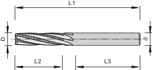 • geeignet zum Schruppen unterschiedlicher Materialien, inbesondere CFK, mit sehr hohem Vorschub