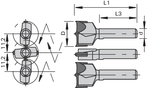 - Set consisting of two left and a right HW cylinder boring bit