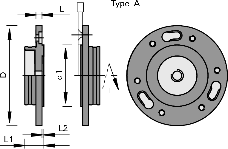 - for the mounting of saw blades up to Ø 250 mm with bore Ø 65 mm, 6 countersunk holes TK 90 mm for screw M 5