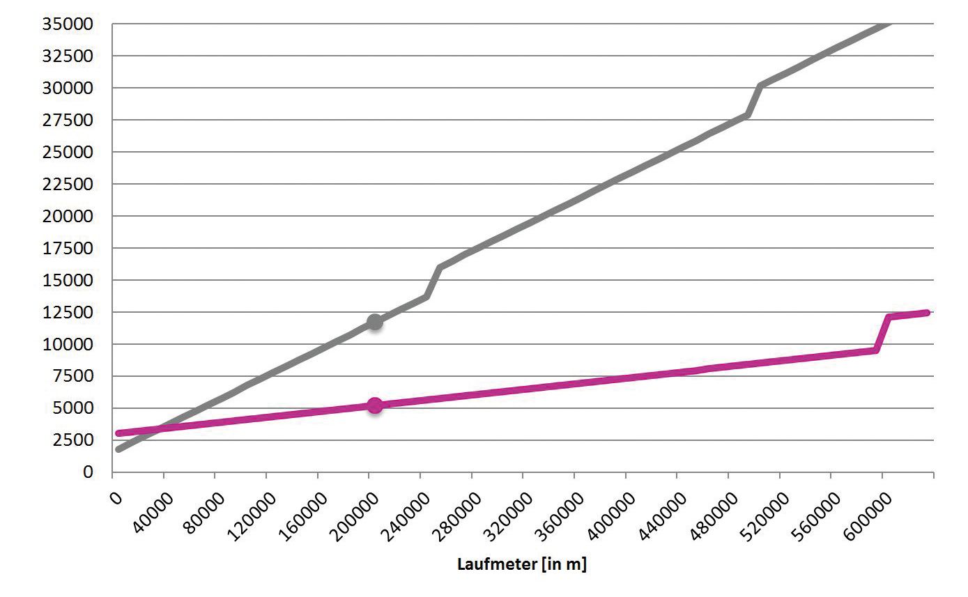 LEUCO 在研发阶段执行了初始测试。结果显示:经过调节,与传统铣刀相比,刀刃寿命延长了3倍。因此这款焊接刀的高售价很快被分摊了。测试中,在磨损能力较强的顶层上执行了40000纵长米以后,这一高昂的价格被证明是值得的。达到200000纵长米以后,已经节省了大约6000欧元的刀具采购与修磨开支。