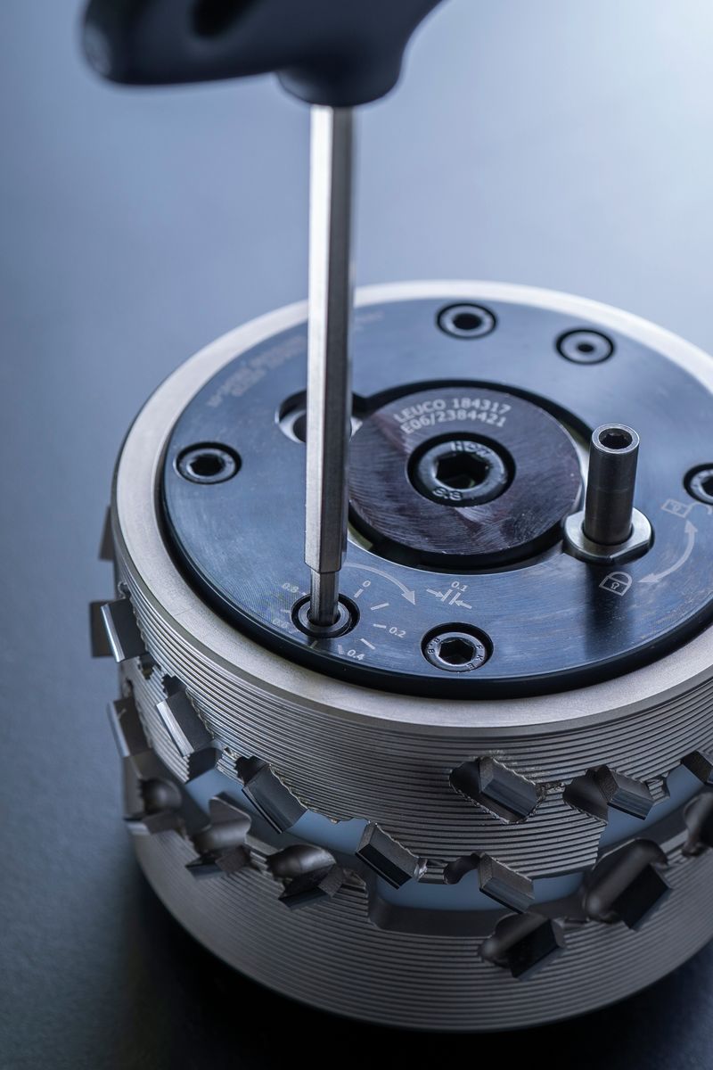 LEUCO 为他们提供的解决方案就是可以同步调节的焊接刀。刀体由两部分组成,金刚石齿切削刃焊接在刀体上。这两部分可以通过调节机制,相互靠近。这样,没有使用过的切削刃也可以得到使用。